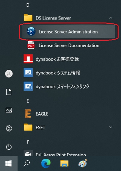 - スタートボタンを押し、アプリ一覧画面から「DS License Server」を選択し、起動します。
