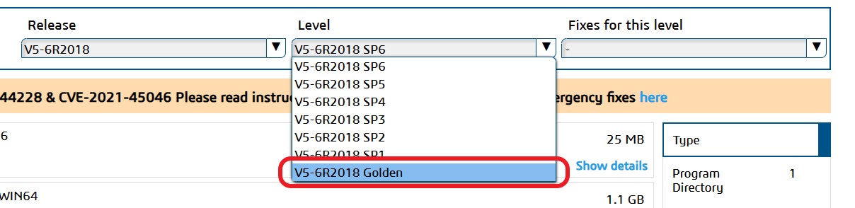 - 「Release」で該当リリースを選択し、「Level」は一番下の「...Golden」を選びます。