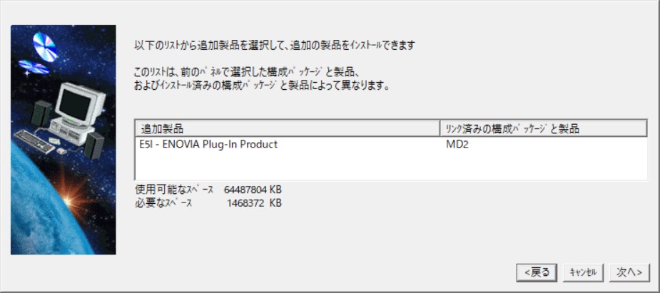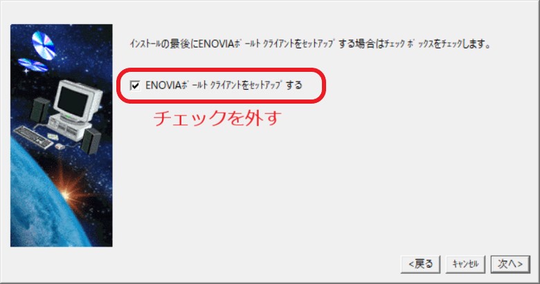 - ENOVIAの設定は行わないので、チェックを外して「次へ」を選択します。