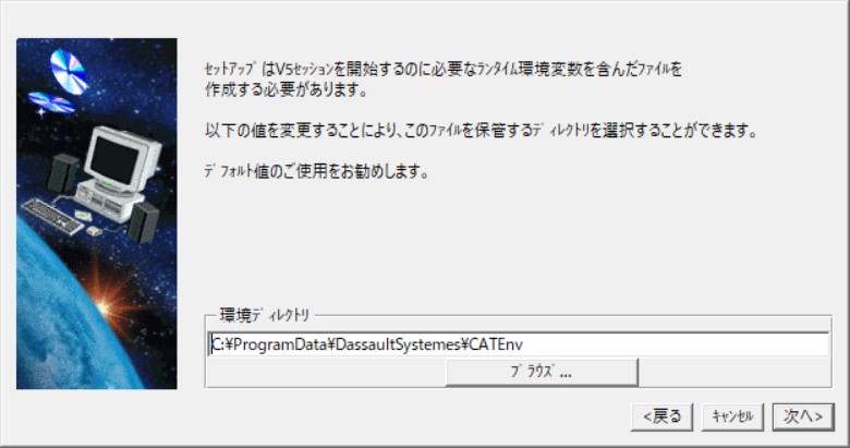 - 環境変数ファイルの保存場所を聞かれますが、こちらもデフォルトにしておきます。