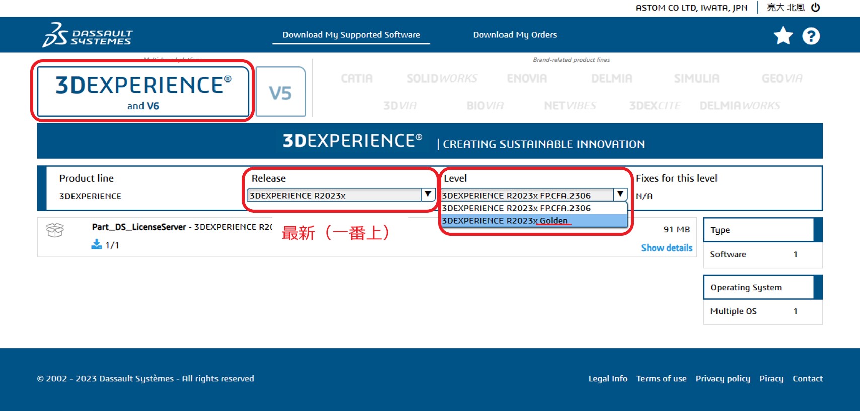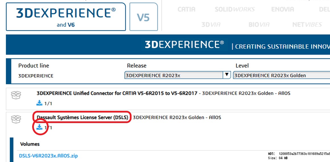 - 「Dassault Systems License Server (DSLS) 」の下にあるダウンロードボタンをします。