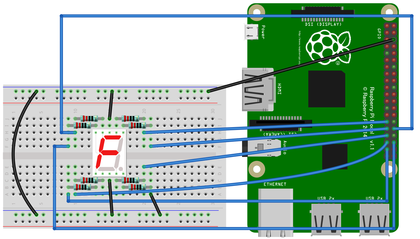 今回はGPIO21~27ピンを使用する。